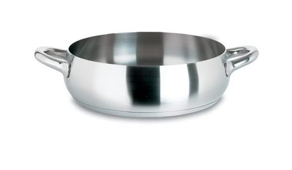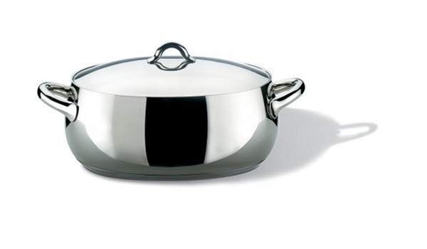 Casseruola bassa a due manici in acciaio inossidabile 18/10 lucido. Fondo in acciaio magnetico adatto anche alla cottura a induzione.