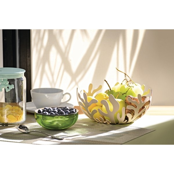 La natura dei fondali marini è l’ispirazione per la fruttiera Mediterraneo. LPWK- Emma Silvestris celebrano il corallo, trasferendo nel metallo l’aura magica e simbolica del mondo sottomarino. Realizzata in acciaio inossidabile, la fruttiera Mediterraneo porta sulla tavola forme lievi ed essenziali che popolano il mare.