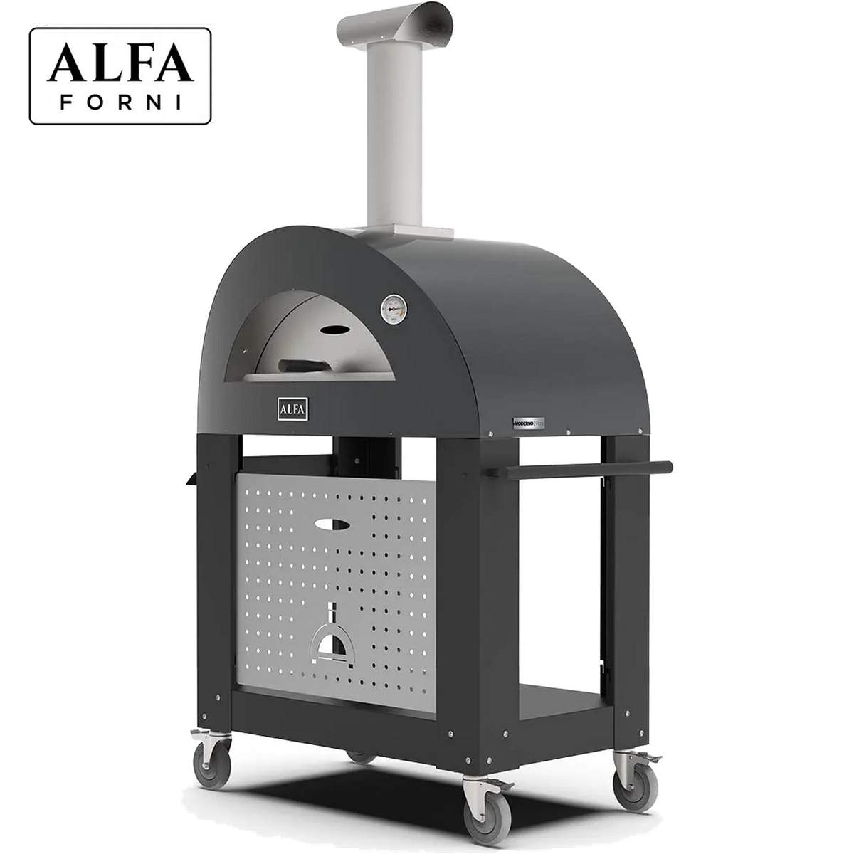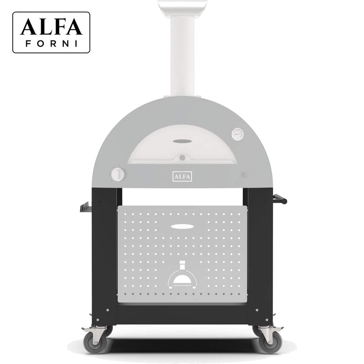 Grazie alla comoda base progettata appositamente per i forni Alfa Moderno, potrai migliorare la tua esperienza all’aperto perché potrai facilmente spostare il tuo forno, infatti la base è dotata di pratiche ruote con freno che ti consentono di muoverla ovunque tu voglia.