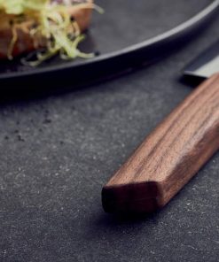 Elegante impugnatura in legno di noce, che offre una presa sicura e stabile durante l’utilizzo.