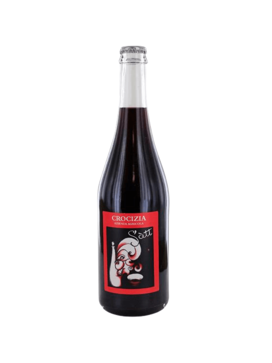 Il vino rosso rifermentato Scett di tenuta Crocizia viene ottenuto con un blend di uvaggi di Barbera, Croatina e Pinot Nero.