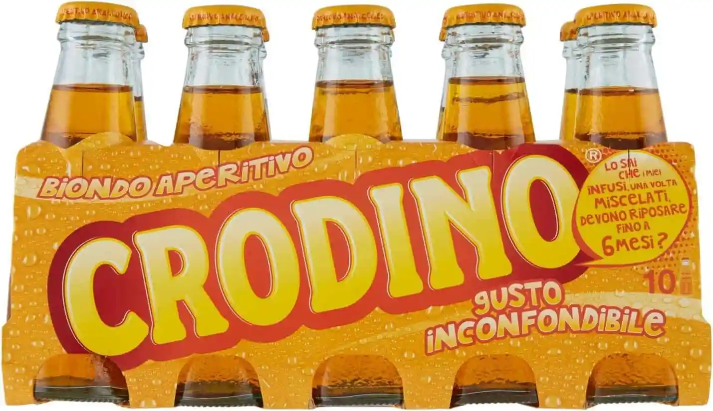 Crodino in italia è l’aperitivo monodose analcolico per antonomasia, il più bevuto, il più conosciuto; il segreto del suo successo è il gusto unico e stuzzicante ottenuto grazie all’estratto ricavato ancora oggi secondo tradizione da una miscela di infusi e distillati di erbe, piante e parti di frutta rigorosamente selezionati; crodino prende il suo nome da crodo, località dell’alto piemonte nella quale storicamente viene prodotto ed imbottigliato, a partire dal 1964, anno di nascita del “biondo” aperitivo