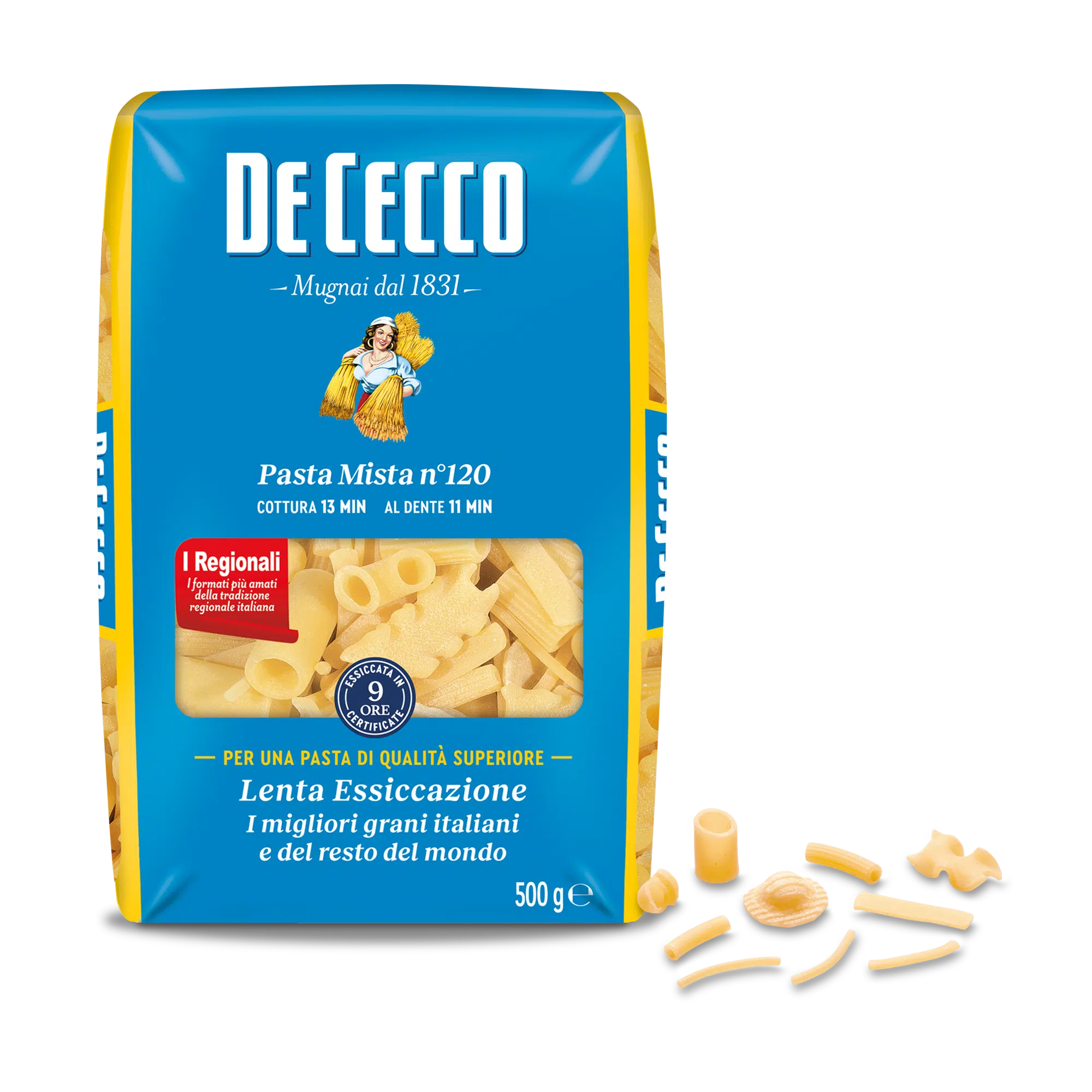 De Cecco, in modo innovativo nel mercato della pasta, ha studiato una Pasta Mista con ben 10 varietà sia corte che lunghe, avvicinandosi ancor di più alla tradizione regionale.
