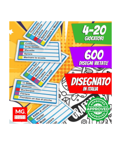- 2 mazzi di 60 carte ciascuno con oltre 600 parole divise in 5 categorie: persone, cose, birichinate, azioni e frasi