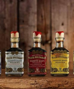 La Collezione più iconica e rappresentativa dell’Acetaia Giusti. Nasce dalla prima storica etichetta Giusti, disegnata ai primi del ‘900 riportando con lo stile dell’epoca i riconoscimenti ottenuti fino a quel tempo. La bottiglia utilizzata in origine era quella più facilmente reperibile nel modenese, ovvero quella del lambrusco: la “Champagnotta”. È composta da cinque Aceti Balsamici di Modena di diverse ricette e invecchiamenti, creati negli anni dalle varie generazioni della famiglia, oggi classificati con un numero progressivo di medaglie, selezionate tra quelle conseguite nelle Esposizioni Universali di fine Ottocento. La “Champagnotta” è stata affiancata oggi anche da altri formati: la Cubica e la Champagnottina, che riproduce la storica bottiglia in un formato più piccolo.