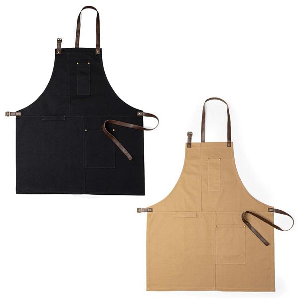 Grembiule in tela di cotone, con cuciture rinforzate e tasca davanti.