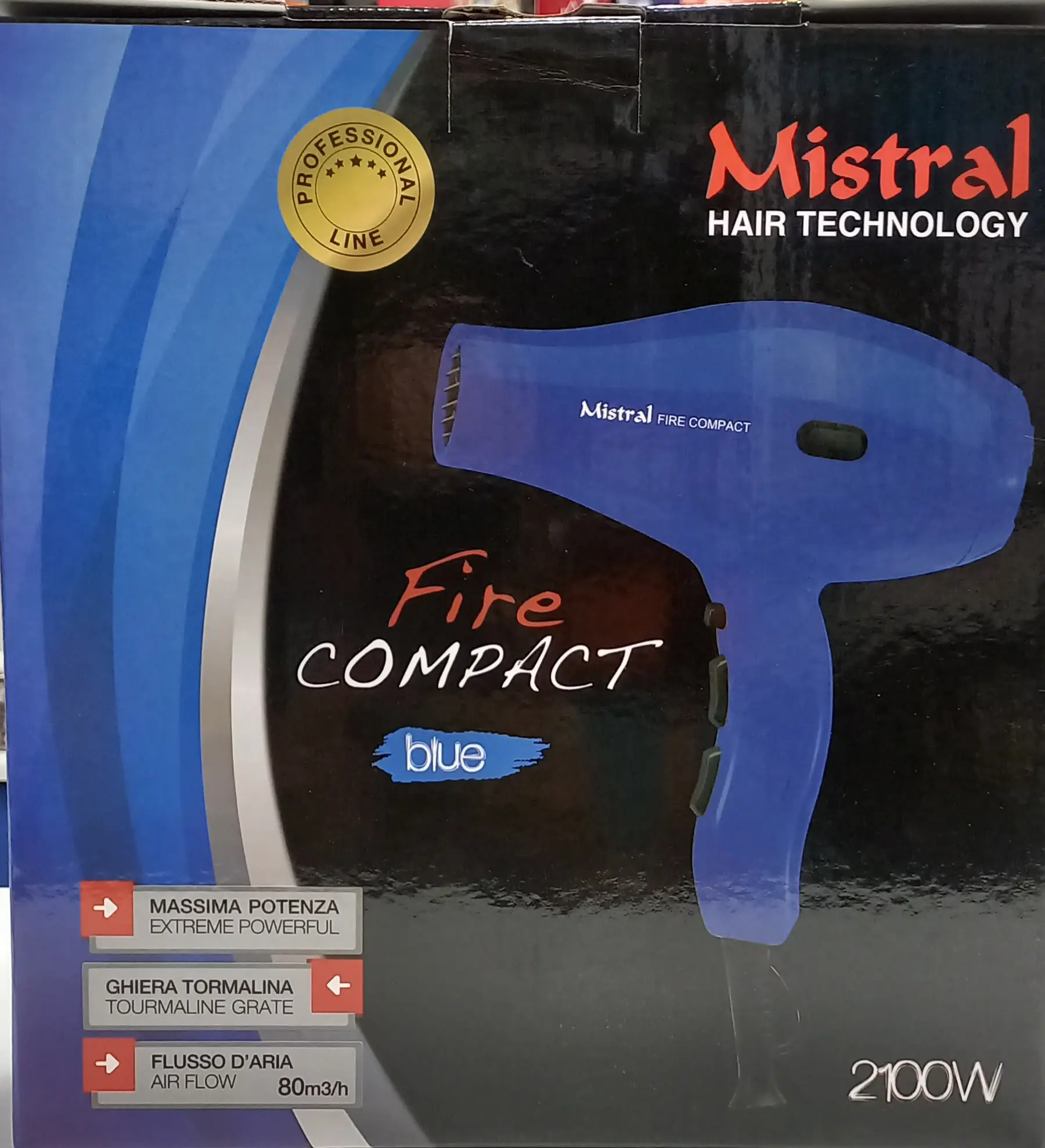 L’ASCIUGACAPELLI MISTRAL FIRE COMPACT ASSICURA UN’ALTA POTENZA GRAZIE AL MOTORE 2100 W, ED AL POTENTE FLUSSO D’ARIA DI 80 MC/H