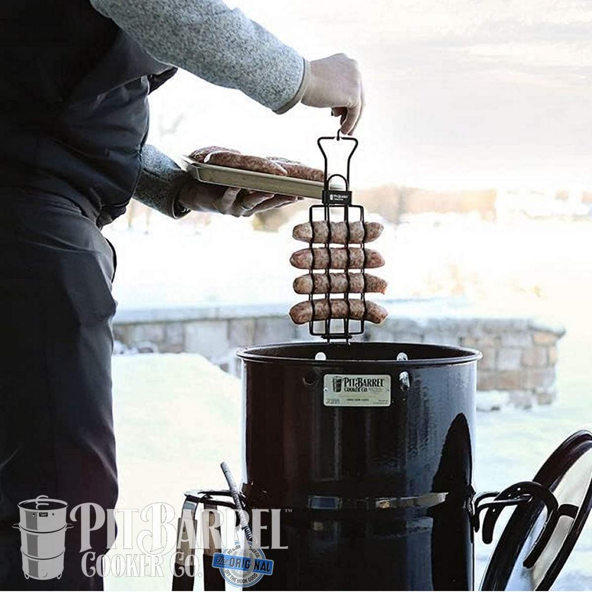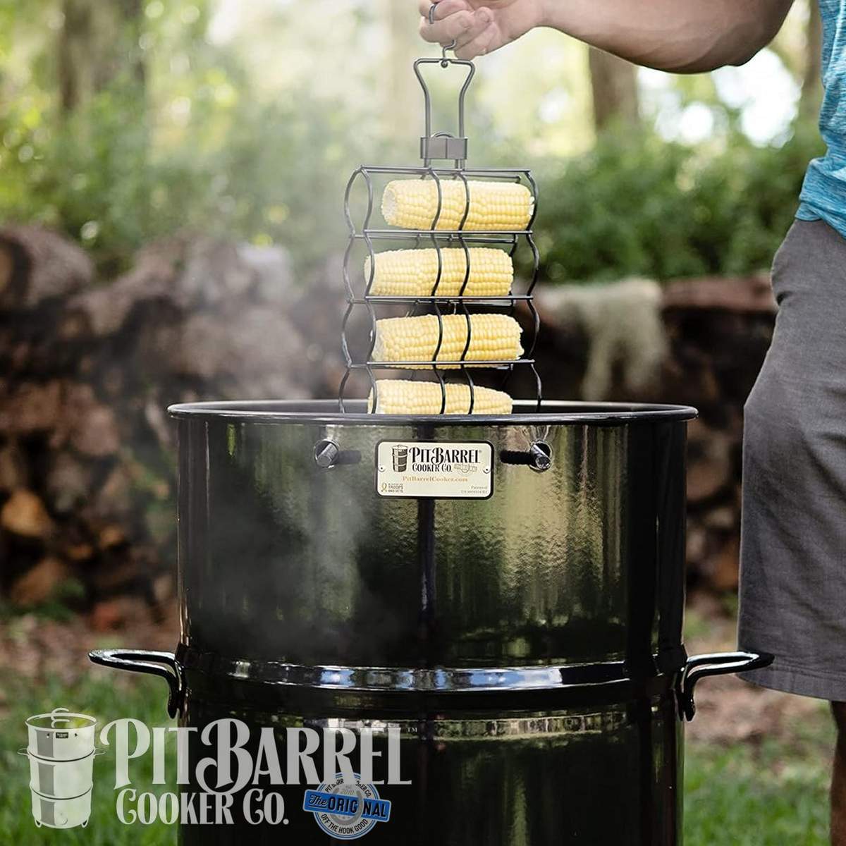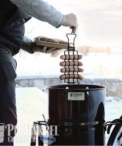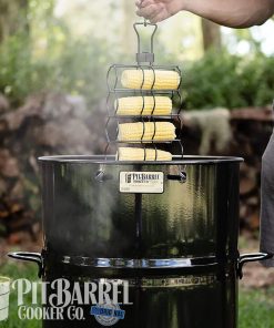 Nel Pit Barrel puoi cucinare 4 pannocchie, 4 salsicce, 1kg di patate insieme a 6 costolette o un tacchino da 7kg.