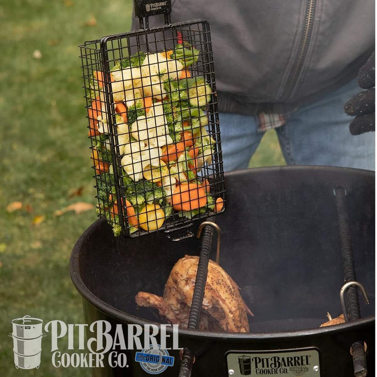 Con il set di ganci Cooker 3 Hanger value di Pit Barrel® potrai preparare un pranzo completo per la famiglia, cucinando contemporaneamente con la carne i tuoi contorni preferiti, senza dover controllare altre postazioni come i fornelli o il forno.