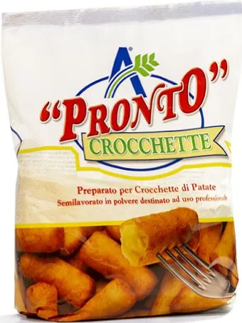 E’ il nuovo preparato per crocchette di patate di ADEA. Con Pronto Crocchette è possibile preparare in pochi minuti soffici e succulente crocchette di patate pronte per essere fritte. Grazie all’accurata selezione delle materie prime, il prodotto finito risulterà croccante all’esterno e morbido all’interno. Pronto Crocchette si conserva a lungo a temperatura ambiente nell’imballo originale, e grazie alla facilità d’uso e alla velocità di realizzazione non richiede di programmare in anticipo la preparazione delle vostre crocchette.