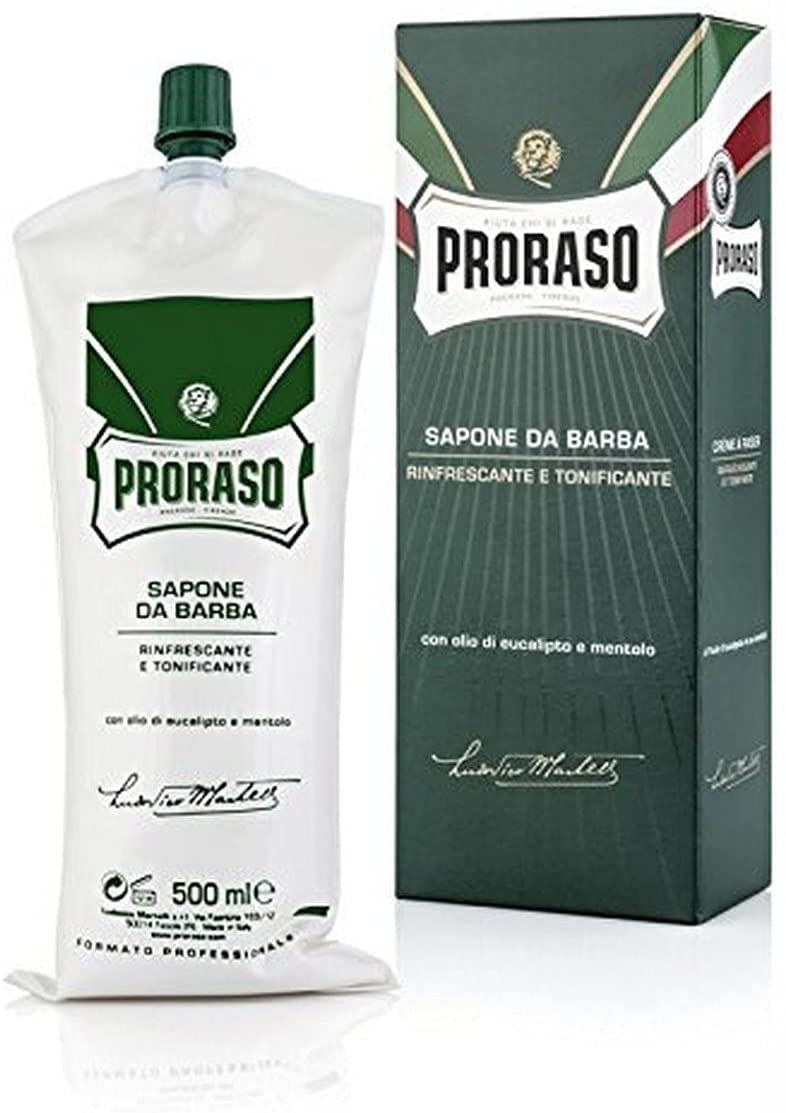 Sapone da barba Proraso è ancora realizzata in modo tradizionale con una trasformazione precisa degli ingredienti naturali, La stearina vegetale e la glicerina fanno di questo sapone in crema una ricca e concentrata pellicola che fa scorrere uniformemente, evitando irritazioni e utilizzando una piccola quantità di prodotto.