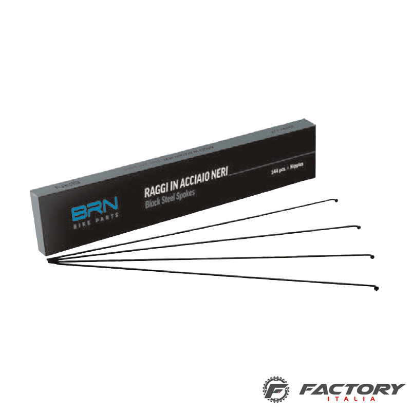 Raggi ruota bicicletta neri in acciaio misura 262 x 2 mm con nipples