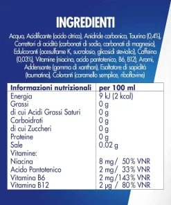 Ci sono due tipi di vitamine: liposolubili e idrosolubili. Red Bull contiene vitamine idrosolubili. Le vitamine idrosolubili non vengono trattenute nel corpo tanto quanto quelle liposolubili. Al contrario, circolano attraverso il plasma sanguigno e tutte quelle che non vengono utilizzate dal corpo vengono poi eliminate. Red Bull contiene le seguenti vitamine del gruppo B idrosolubili: niacina (vitamina B3), acido pantotenico (vitamina B5), vitamina B6 e vitamina B12.