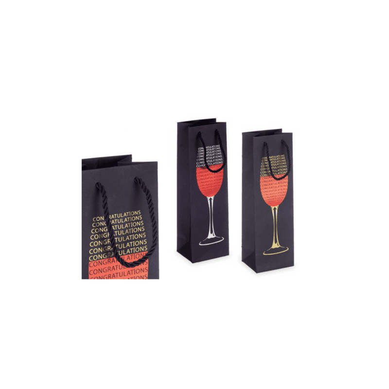 Celebra le tue occasioni speciali con eleganza e stile grazie al Sacchetto per Bottiglie Calice Congratulazioni Argento, disponibile esclusivamente su My Fiesta. Questo sacchetto, impreziosito da un’accattivante finitura argentata e adornato dalla scritta “Congratulazioni” in eleganti caratteri calligrafici, è la soluzione ideale per presentare il tuo vino con un tocco di raffinatezza senza tempo.