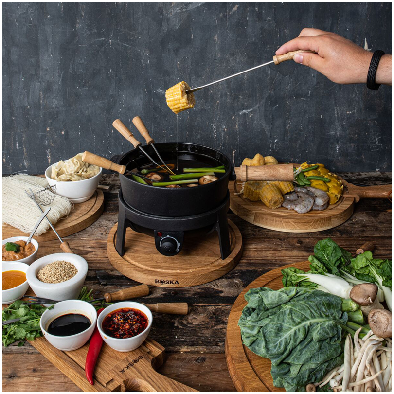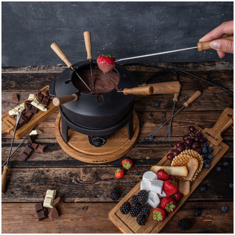 Il servizio da fonduta elettrica è perfetto per per tutti i tipi di fonduta (cioccolato, formaggio, brodo o bourguignonne).