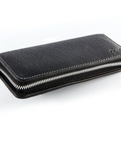 L’astuccio in pelle ha chiusura a cerniera.