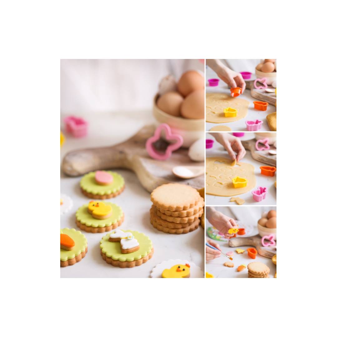 Set taglia biscotto in plastica composto da sei mini stampini dedicati alla Pasqua