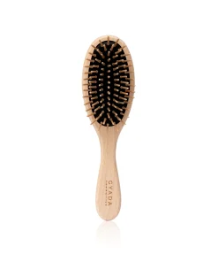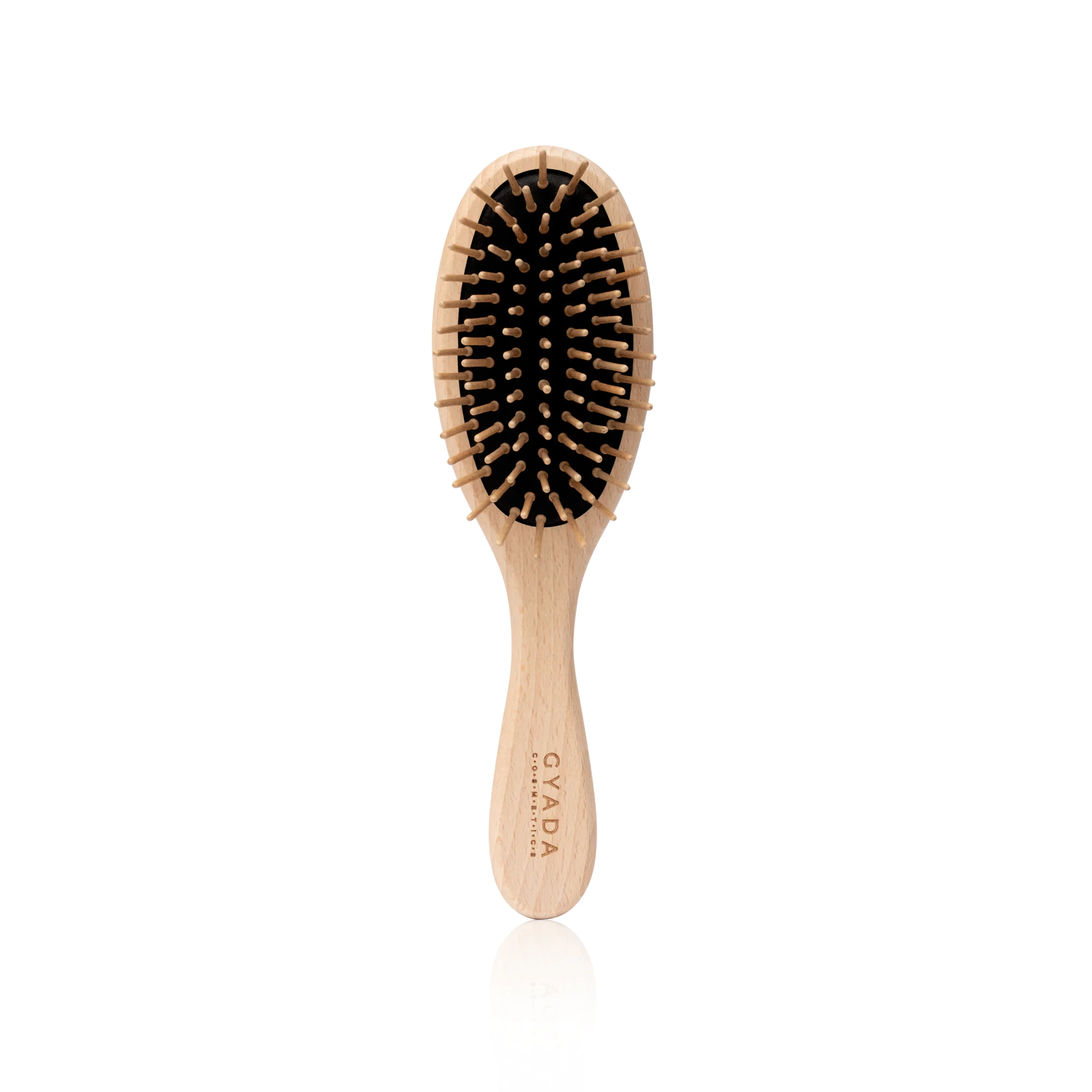 LINEA SPAZZOLE E PETTINI IN LEGNO DI FAGGIO Spazzole e pettini in legno di faggio e setole in nylon progettati per garantire la massima cura dei capelli e del cuoio capelluto. Una linea completa per aiutarti a ottenere la piega che desideri, qualsiasi sia la lunghezza della tua chioma. Il legno evita l’elettricità statica contrastando l’effetto crespo per capelli più luminosi, forti e disciplinati. Spazzola Ovale Media Con struttura e dentini in legno di faggio Spazzola ovale media con struttura e dentini in legno di faggio. Le sue dimensioni la rendono ideale per districare tutti i tipi di capelli lunghi e medio-lunghi. INFORMAZIONI AGGIUNTIVE Spazzola realizzata in legno di faggio levigato e dentini in legno di faggio inseriti in un supporto pneumatico di pura gomma naturale. Dimensioni: • spazzola: 22×6,5×3,5H cm • dentini: Ø 1,8 x 17 mm A CHI È INDICATO Per districare tutti i tipi di capelli lunghi e medio-lunghi. COSA TI PIACERÀ • I dentini in legno di faggio massaggiano il cuoio capelluto e lucidano la fibra capillare • La sezione pneumatica rende piacevole la spazzolatura • Azione antistatica: non elettrizza i capelli • Districa i nodi senza strappare i capelli • Resistente e duratura nel tempo • 100% Made in Italy C OME SI USA Si consiglia di spazzolare i capelli due volte al giorno, mattino e sera. Per districare i nodi, spazzolare prima punte e lunghezze per poi salire verso le radici. Districati tutti i nodi, spazzolare i capelli dalle radici alle punte. MANUTENZIONE E CURA Rimuovere eventuali capelli tra i dentini. Lavare periodicamente con acqua e sapone neutro, aiutandosi se necessario con uno scovolino. Tamponare con un panno e lasciare asciugare all’aria. Non esporre a fonti dirette di calore (calorifero, stufa, etc.). Evitare di immergere la spazzola in acqua per lunghi periodi o di lasciarla in doccia.