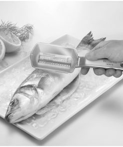La lama larga toglie le squame dalla pelle del pesce in modo rapido ed efficace.