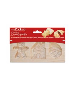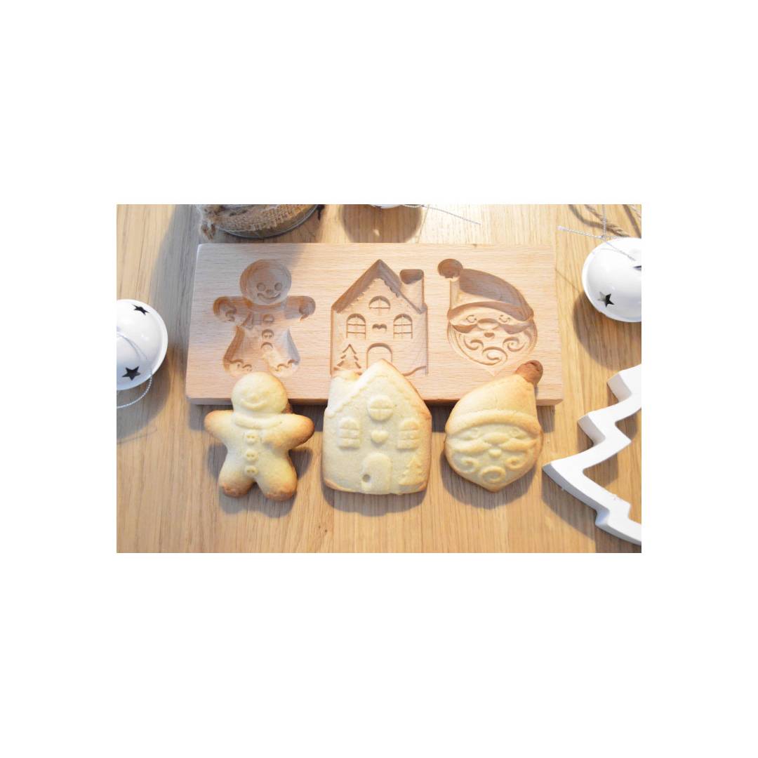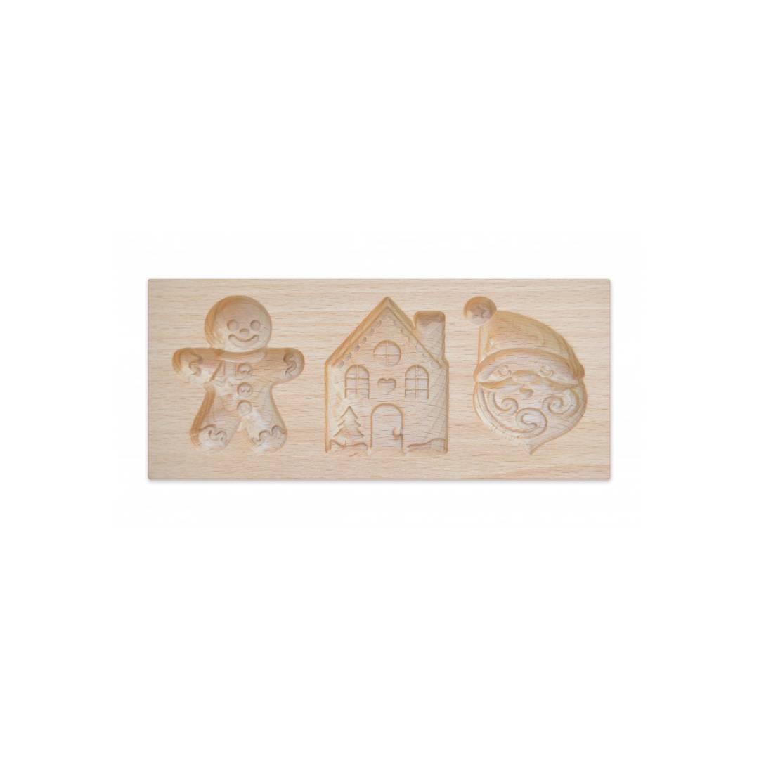 Stampo in legno per Biscotti di Natale – Gingerbread, Casetta & Babbo Natale
