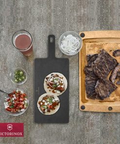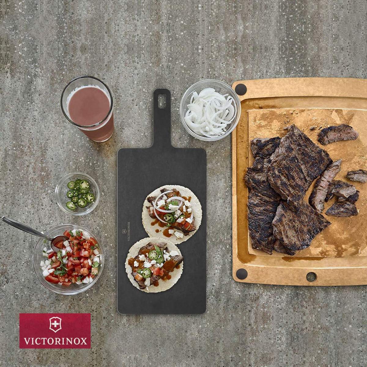 Praticità ed eleganza sono le parole chiave che descrivono questa linea di taglieri Victorinox, realizzati con materiale ecologico composto da carta resistente al calore fino a 175°C e dotati di comodo manico che ne facilita il trasporto.