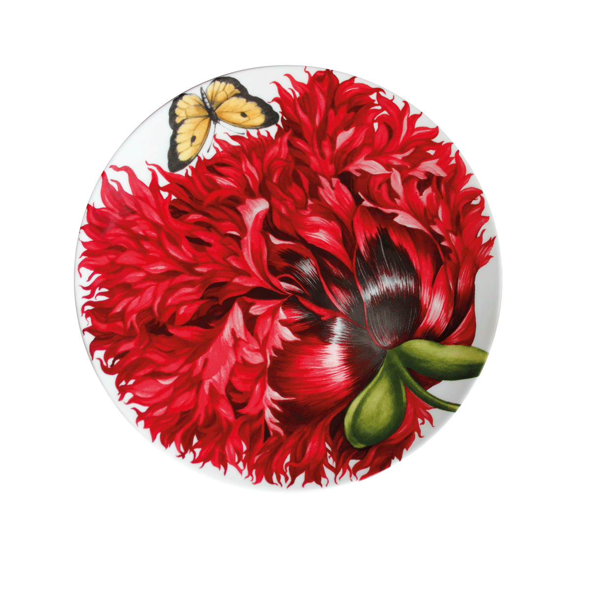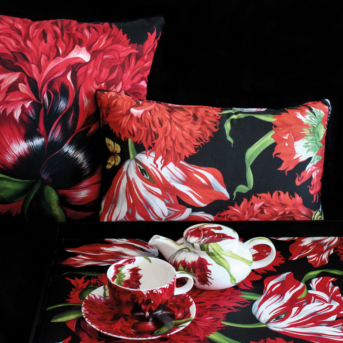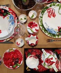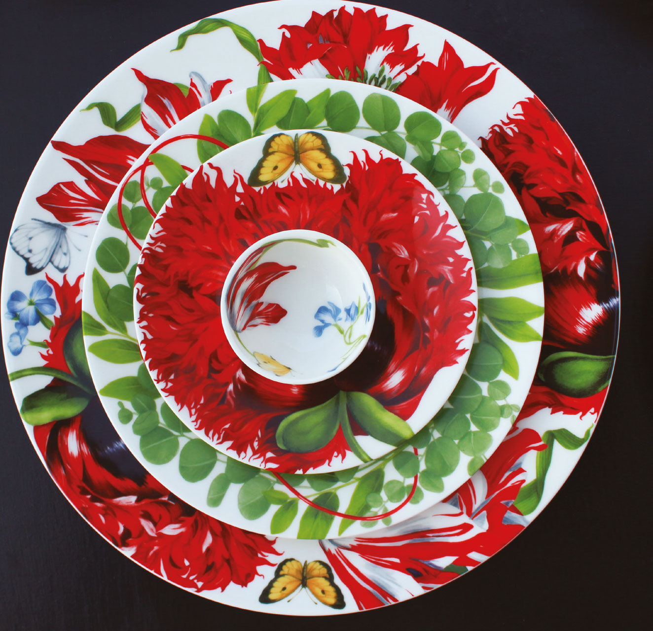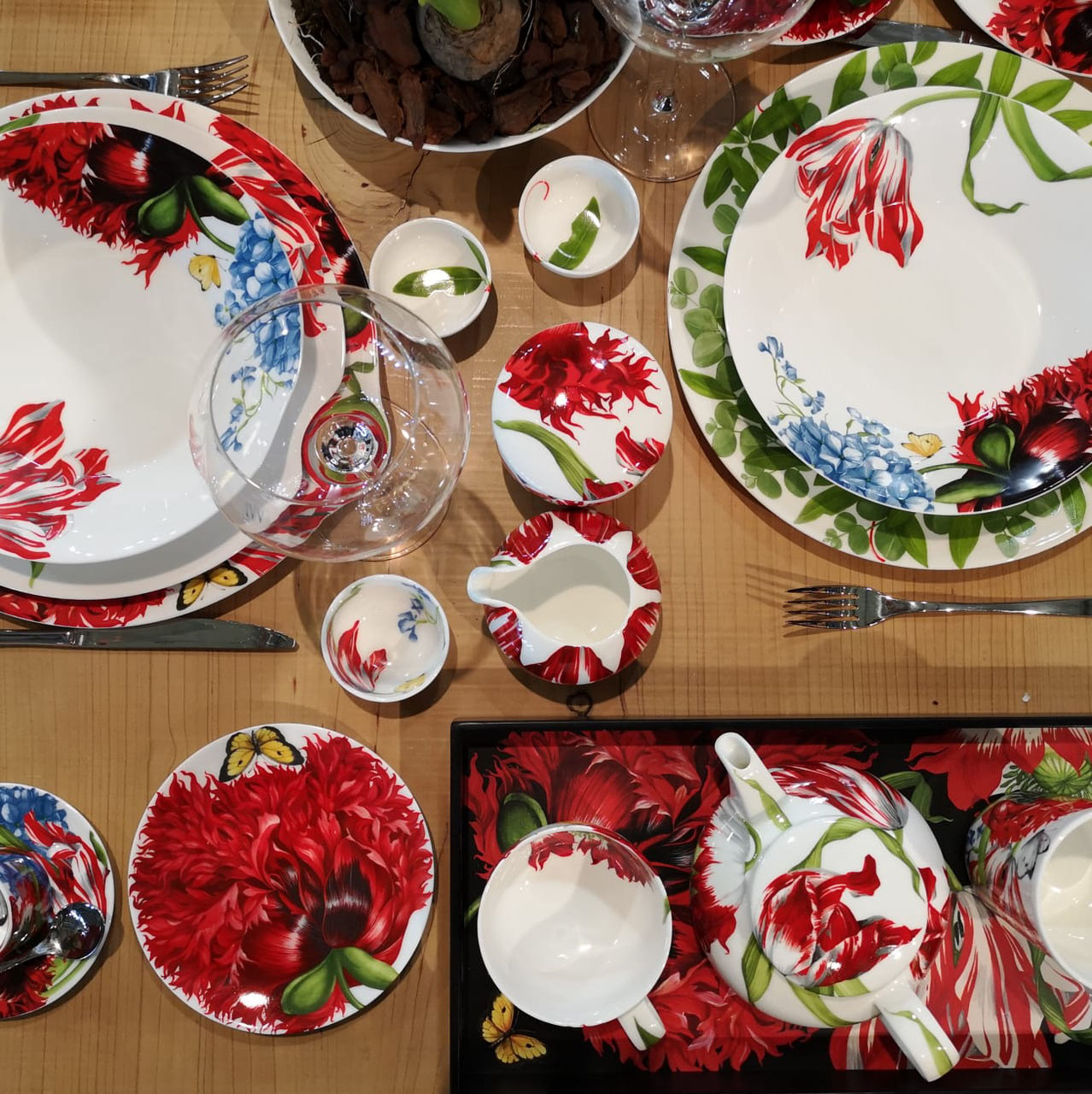 Sono i tulipani sfrangiati, le farfalle, le lumache che si susseguono su nuove morbide forme di porcellana, sul legno di betulla, su tessuti preziosi.