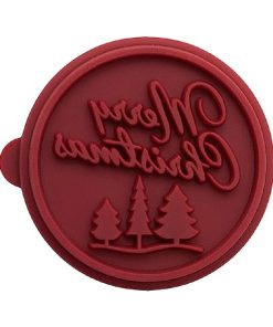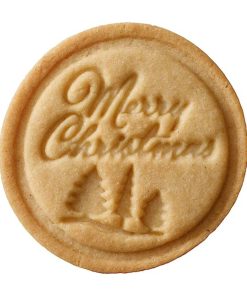 Timbro per creare biscotti con il centro decorato con la scritta ‘Merry Christmas’.