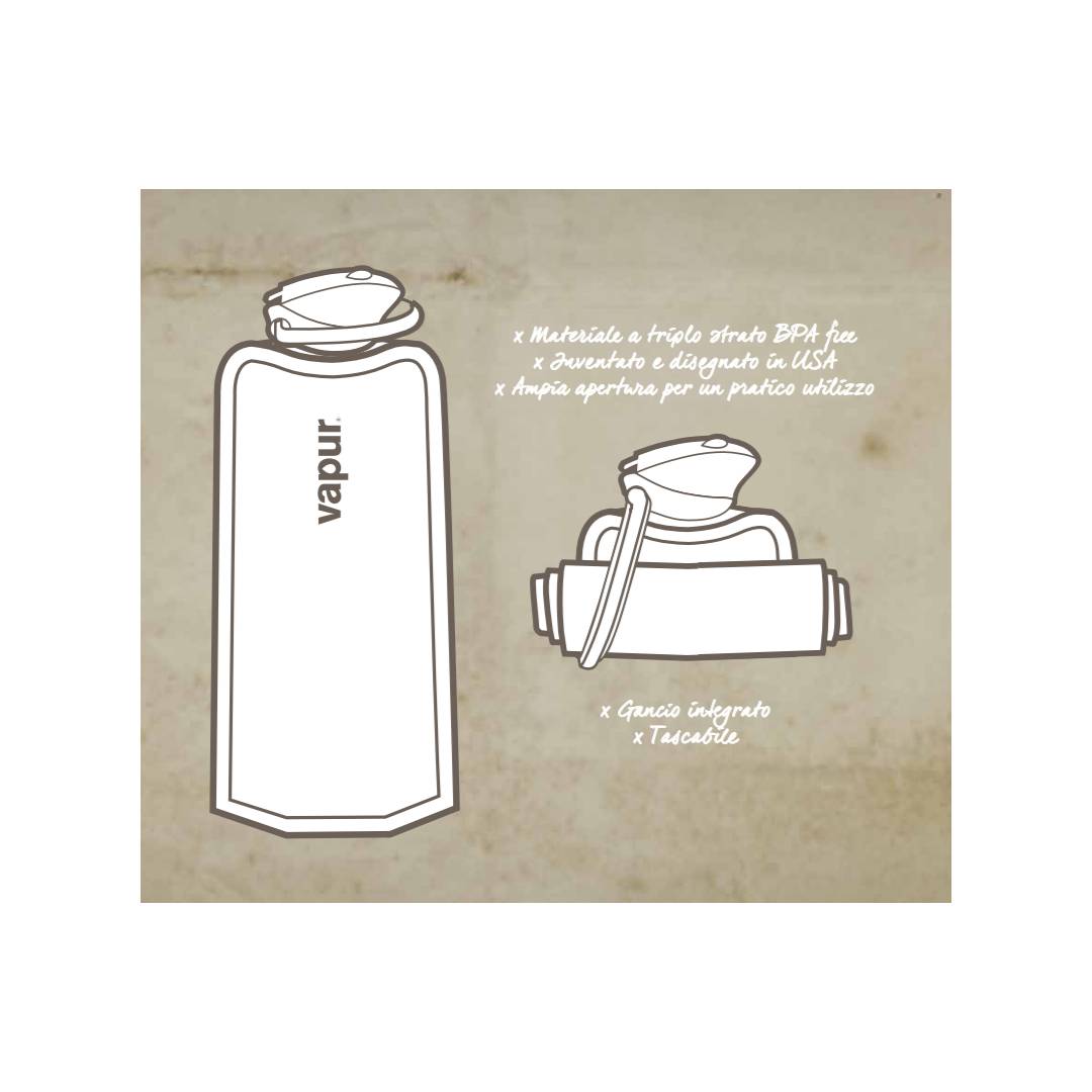 L’Anti-Bottle Vapur è una borraccia flessibile che vuole rivoluzionare il tuo modo di dissetarti. La puoi piegare, schiacciare, arrotolare, lavare tutte le volte che vuoi e portare sempre con te.
