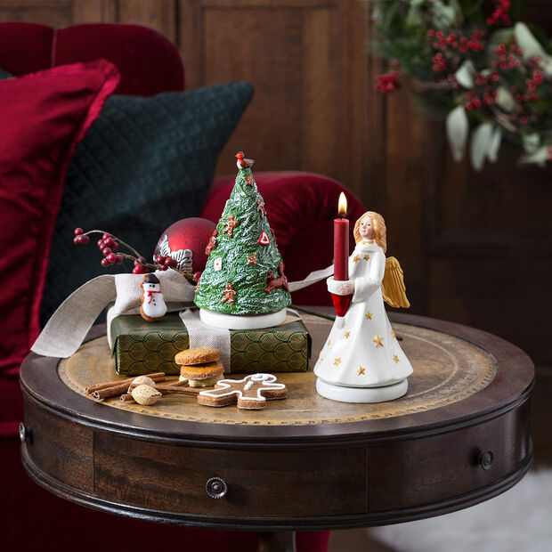 Nostalgic Melody fa parte del vasto mondo natalizio di Villeroy & Boch. Come suggerisce il nome, le figure di questa serie incantano con un carillon integrato. Ideale come aggiunta alla vostra casa addobbata a festa, da collezionare e abbinare. Questa piccola statuina ad albero di Natale rotante è una gioia per gli occhi e le orecchie, grazie al suo carillon di alta qualità custodito all’interno. Questo suona la canzone “White Christmas”. Decorate la vostra casa con bellissimi addobbi.