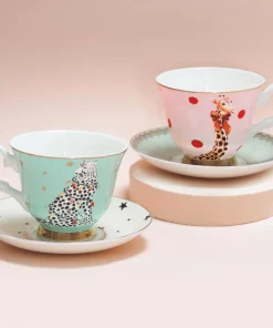Yvonne Ellen Set 2 Tazze da Tè con Piatto Ghepardo e Giraffa